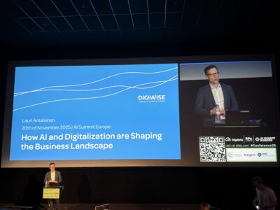 In November, Digiwise’s Lead Consultant Lauri Antalainen participated in AI Summit Europe in Vilnius, where he delivered a keynote titled “How AI and Digitalization Are Reshaping the Business Landscape.”